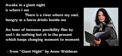 1945 – Anne Waldman born, American poet, performer scholar and cultural/political activist; recipient of the Poetry Society of America’s 1996 Shelley Memorial Award