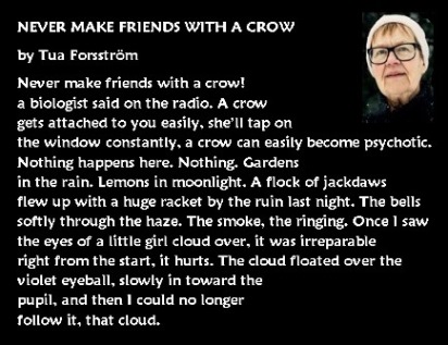 1947 – Tua Forsström born, Finnish writer and poet who writes in Swedish; her poetry collection Efter att ha tillbringat en natt bland hästar (After Spending a Night Among Horses) won the Nordic Council’s 1998 Literature Prize. Snöleopard (Snow Leopard) was translated into English by David McDuff, for which he won the Poetry Book Society’s 1990 Translation Award