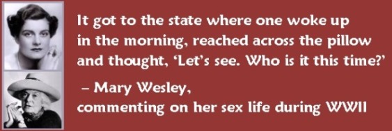 1912 –Mary Wesley born, English novelist and children’s author; she worked for MI5 during the war and noted in her official biography, published after her death, that she would “hunt in pairs” with her friend Betty, who, like her, favoured men in RAF uniform. Years later, when her husband died she was left impoverished, and tried writing children’s books, but they brought in little money. Her first adult novel, Jumping the Queue, was published when she was 71 years old, but it was followed by ten other novels in the next fourteen years, all of them bestsellers. Her most successful book, The Camomile Lawn, was made into a popular television series in the UK. Some younger readers were shocked that an “elderly woman” author would use such salty language and put septuagenarian sexual scenes in her books, but she delighted a large number of readers who were her contemporaries