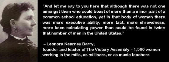 1849 – Leonora Kearney Barry born in Ireland, American labor reformer and women’s rights activist, the only woman to hold national office in the Knights of Labor
