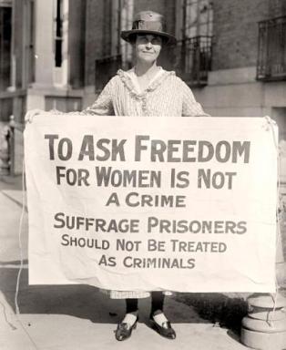1917 – During WWI, Woman Suffrage protesters outside the White House carry banners addressed to “Kaiser Wilson.” Ten of them, including Alice Paul, are arrested, sentenced to work camps, and then their hunger strike ended by forced feeding. Between June and November of 1971, 218 demonstrators were arrested, charged with “obstructing sidewalk traffic” outside the White House gates. The jailing and forced feedings were well-covered in the newspapers and pressure grew, until President Wilson announced in January, 1918, that the suffrage amendment was urgently needed as a “war measure.” The House voted to pass it, and the women stopped the picketing. But when the amendment failed to pass in the Senate – by one vote – on September 30, 1918, they returned to picketing throughout the winter, becoming more confrontational, chaining themselves to fences, and burning “watch fires” in front of the White House