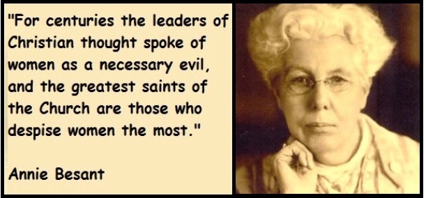 1847 – Annie Besant born, British socialist, women’s rights activist, theosophist, author and orator; notable speaker for the Fabian Society, the National Secular Society (NSS) and later for the Theosophist Society; prosecuted for publishing a book advocating birth control in 1877; also supported home-rule for Ireland and India, and labor movement actions, including the 1888 London matchgirls strike; elected to the London School Board for Tower Hamlets, even though few women could vote at the time