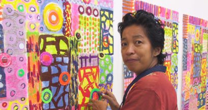 1946 – Pacita Abad born, Filipina visual artist; in 1972, she earned a master’s in Asian history at Lone Mountain College (now part of the University of San Francisco), then studied painting in Washington DC and New York City. She lived on six continents and worked in more than 50 countries, and created over 4,500 artworks. Best known for her colorful abstract large-scale paintings. Her last major work was painting 2,350 multicolored circles on the 180 foot long (55-meters) Alkaff Bridge in Singapore, completed just a months before she died of lung cancer in December, 2004, at age 58