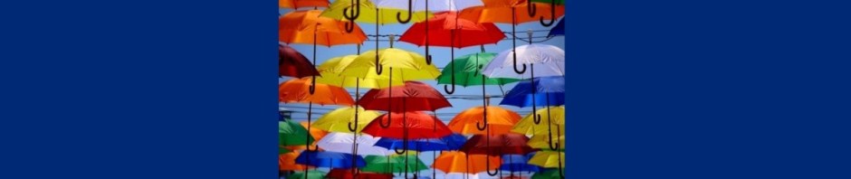 A colour riot of bright, shiny brollies, on full display.