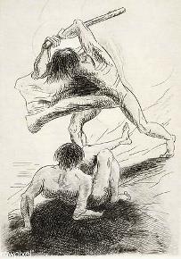 “Adam and Eve were standing on the bank of a brook, and before them lay the corpse of Abel, who had been killed by Cain. As they sat there, not knowing what they should do with the corpse, suddenly a little bird fell from a nearby tree. The little bird was still very young and could not fly. The fall killed it. Adam and Eve looked at the dead bird and saw that it was a raven. Soon the old raven flew by, and when he saw that his young one was dead, he scratched a hole in the ground with his feet, and laid it inside. Then he scratched the hole full and flew away. Adam and Eve observed all this and followed the raven’s example. They made a hole in the earth, laid Abel’s corpse in it, and covered it with earth. This was the first human grave.”