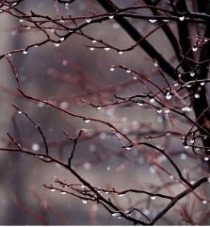 Rain-diamonds, this winter morning, embellish the tangle of unpruned pear-tree twigs; each solitaire, placed, it appears, with considered judgement, bears the light beneath the rifted clouds — the indivisible shared out in endless abundance.